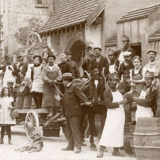 À l’automne 1914, en pleine Première Guerre mondiale, l’Armée suisse est submergée par les demandes de congé. En cause : la rentrée scolaire pour les enseignants et étudiants mobilisés… mais aussi la saison des vendanges ! Face à la pénurie de main-d’œuvre, certaines communes accordent des permissions spéciales aux soldats pour leur permettre de rentrer aider dans les vignes. Sur cette photographie, prise devant les actuelles Caves du Prieuré à Cormondrèche, on y découvre ces vendangeurs en uniforme.