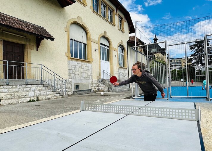 Elle permettra des parties endiablées: dans la cour du collège de Serrières, une table de ping-pong installée durant les vacances de Pâques 2024 concrétise le projet citoyen lancé par Jonas Aegerter. Ce dernier a souhaité mettre à disposition de son quartier, et notamment des élèves à la pause ou après l'école, un équipement ludique, rassembleur et qui permet de bouger. En novembre 2023, il a ainsi déposé un projet (en fait un mandat transformé en projet lors de la même séance) à l’assemblée citoyenne de Neuchâtel Ouest. Accepté à l’unanimité, ce projet a pu rapidement devenir réalité, avec l’appui des services de la Ville, à côté des deux tables de pique-nique existantes. La table n’est pas réservée à l’usage scolaire : elle est à disposition de tous les habitant-e-s. « Je suis heureux de constater que ce projet ait pu aboutir de manière rapide et très satisfaisante », conclut son auteur, qui espère aussi, à travers l'assocation de quartier Serrières Bouge! dont il est membre, pouvoir installer sur les rives un équipement de fitness urbain.