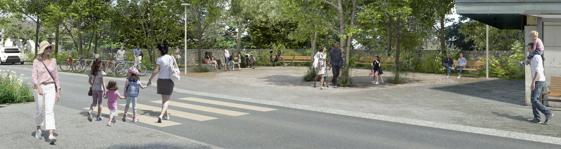 La place du Clos-de-Serrières entrera en chantier de mars à fin septembre 2025. Ce lieu d'aspect très minéral offrira un cadre agréable propice au renforcement du lien social et à la convivialité. Conformément au projet accepté en votation populaire (plus de détails sur cette page), la nouvelle place offrira des bancs, une vingtaine de nouveaux arbres et son sol en partie perméabilisé sera propice à l’écoulement des eaux de pluie et à la réduction de l’effet d’îlot de chaleur en été.