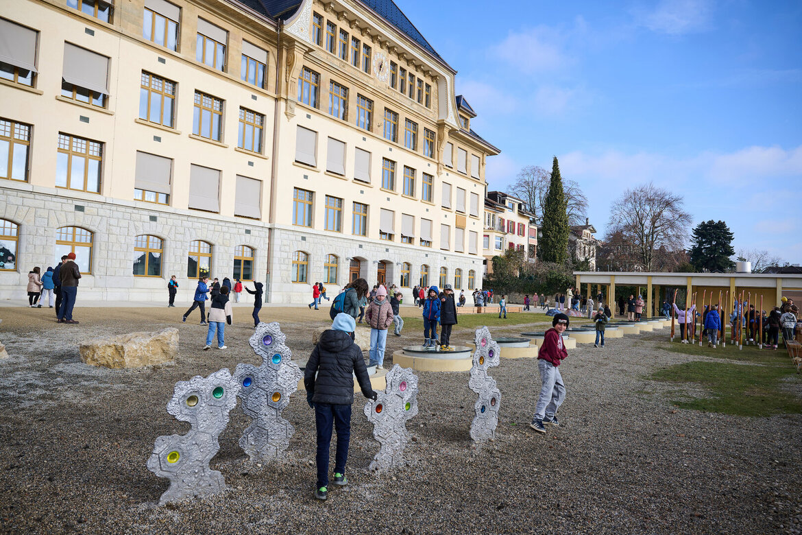 Le Conseil communal, à l'initiative de Nicole Baur, présidente pour l'année 2025-2026 et en charge de la formation et des écoles, a décidé de faire sa photo officielle depuis le nouveau bâtiment scolaire. Réalisé par Stoa Architectes et intitulé "A l'ombre des colonnades", cet édifice situé au nord du collège historique a la particularité d'être doté de larges terrasses lumineuses et sécurisées, permettant au corps enseignant de sortir plus souvent des salles de classe pour mener des activités pédagogiques à l'extérieur, sans pour autant devoir quitter le périmètre scolaire (photo: Bernard Python).