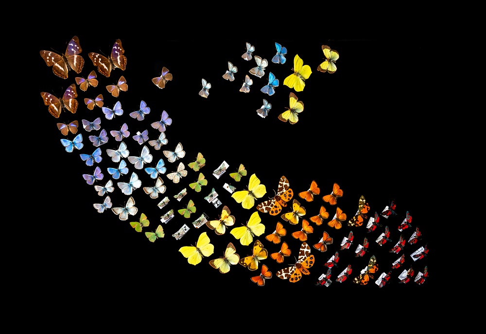 Suite à une publication récente de l’ICOM (Conseil international des musées) et de l’AMS (Association des musées suisses) sur le conflit en Ukraine, le Muséum d’histoire naturelle de Neuchâtel propose une interprétation du drapeau de la paix. Des papillons de jour et de nuit issus des collections sont présentés. Ces spécimens ont été sélectionnés en fonction de deux critères. D’une part, ce sont des espèces communes vivant en Suisse et en Ukraine et d’autre part, leurs couleurs évoquent celle de la paix. Organisée de violet à rouge, l’installation symbolise l’engagement de la communauté muséale contre la crise humanitaire, culturelle et écologique actuelle. Les textes de cet espace sont en français et ukrainien.