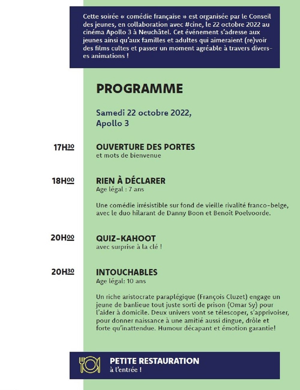 Le Conseil des Jeunes de la Ville de Neuchâtel et de La Côte est un lieu d'apprentissage et de pratique de la citoyenneté qui permet à des élèves de 12 à 15 ans du cycle 3, issus des collèges du Mail, des Terreaux et des Coteaux, de réaliser différentes actions et projets. Ils se réunissent en séances plénières et en séances de commissions les mercredis après-midi pour mettre sur pied les projets qu’ils ont choisis. Des exemples ? La soirée fluo mousse à la Case à Chocs ou encore le festival Newcastle Gaming au Centre de Loisirs.