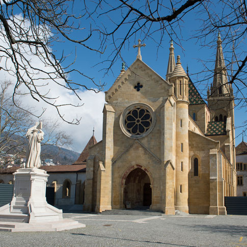 La basilique mineure Notre-Dame de l’Assomption, plus souvent appelée l'Eglise rouge, est le plus récent des grands édifices religieux de Neuchâtel. Elle fut construite de 1897 à 1906 par l'architecte et ingénieur Guillaume Ritter qui utilisera un matériau nouveau pour l'époque: la pierre artificielle, un aggloméré de mortier à base de chaux et de gravier auquel il ajoutera du ciment teinté en rouge pour obtenir l'aspect rougeâtre du grès d'Alsace. Dédié à Notre-Dame de l'Assomption, l'édifice est construit sur un terrain gagné sur le lac et cédé gratuitement par la commune. En 2007, l'église a été élevée au rang de basilique mineure par le Saint-Siège.