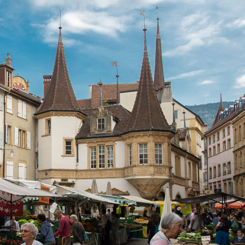 Toujours pleine de vie, la place des Halles s’anime au gré des saisons. Les jours de marché, les Neuchâtelois sont nombreux à fouler ses pavés pour y faire leurs emplettes. Dans les stands colorés aux mille et une saveurs, les maraîchers proposent des produits frais et locaux deux à trois fois par semaine, les mardis, jeudis et samedis. En été, la place est agrémentée de plusieurs terrasses où il fait bon s’attarder pour boire un verre ou partager un repas, tandis qu’en hiver un chapiteau lumineux apporte une touche de féérie à cette place emblématique de la ville.