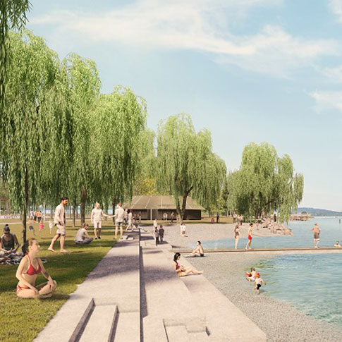 Le réaménagement des Jeunes-Rives, qui prévoit la réalisation d'un parc de 70'000 m2 reliant le lac au coeur de la cité, a démarré en 2023. Une première étape importante a été franchie à l'été 2024 avec l'ouverture des rives réaménagées, formant une plage deux fois plus grande qu'auparavant. L'aménagement a été complété en été 2025 avec des accès à l'eau par pontons, des bancs et espaces de pique-nique, un vestaire et des commodités ainsi qu'une toute nouvelle place de jeux. Les travaux se poursuivent localement avec la construction d'un restaurant et d'un café-bains. Puis ce sera au tour de l'arrière des rives (secteur 2) d'être transformé pour compléter ce vaste parc paysager, qui pourra accueillir des événements culturels et autres manifestations. Ce projet est le fruit d'un long processus, qui a démarré en 2010 avec le concours Europan.