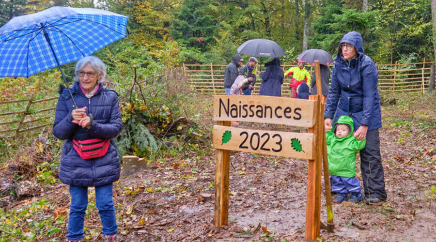 Chaque année depuis l'an 2000, dans le cadre de l'Agenda 21 de la Ville, l'Office des forêts organise l'action "Un arbre pour chaque naissance". Les parents des enfants nés dans l'année peuvent venir planter eux-mêmes un bébé chêne dans l'une des forêts communale. Ils reçoivent aussi un jouer façonné dans du bois local. Que ce soit papa ou maman qui manie la pioche, c’est toujours un joli moment en famille. Depuis l’an 2000, plus de 3000 chênes ont été plantés, que ce soir à Pierre-à-Bot, à la roche de l'Ermitage et depuis la fusion dans les belles forêts de Corcelles-Cormondrèche en 2021 ou de Peseux, en 2022. En 2023, c'est sous une pluie battante que les parents ont planté les jeunes arbres!