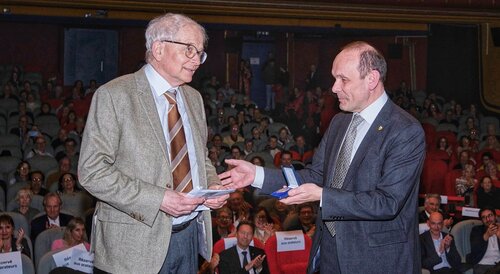 La cérémonie, pleine d'émotion mais aussi teintée d'humour, s'est déroulée en présence du Conseil communal de la Ville de Neuchâtel au complet, emmené par son président Mauro Moruzzi, ainsi que du réalisateur du film, Sébastien Reichenbach, des membres de l’Ecole d’archéologie suisse en Grèce (ESAG) - Sylvian Fachard son directeur et Pierre Ducrey l’un de ses éminents membres - et bien sûr de Denis Knoepfler, professeur honoraire à l’Université de Neuchâtel et professeur émérite au Collège de France.