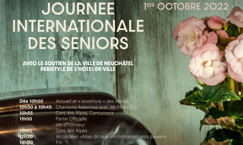 A l’occasion de la Journée internationale des personnes âgées, samedi 1er octobre, une journée d’échanges et de rencontres est organisée au Péristyle de l’Hôtel de Ville de Neuchâtel. Plus d’une dizaine d’associations et d’institutions publiques tiendront un stand dès 10h pour présenter leurs activités, avec le soutien de la Ville de Neuchâtel. Objectif, attirer l’attention du grand public sur la question du vieillissement et faire connaître le travail de ce réseau de partenaires engagés pour le bien-être et l’inclusion des seniors dans la société.