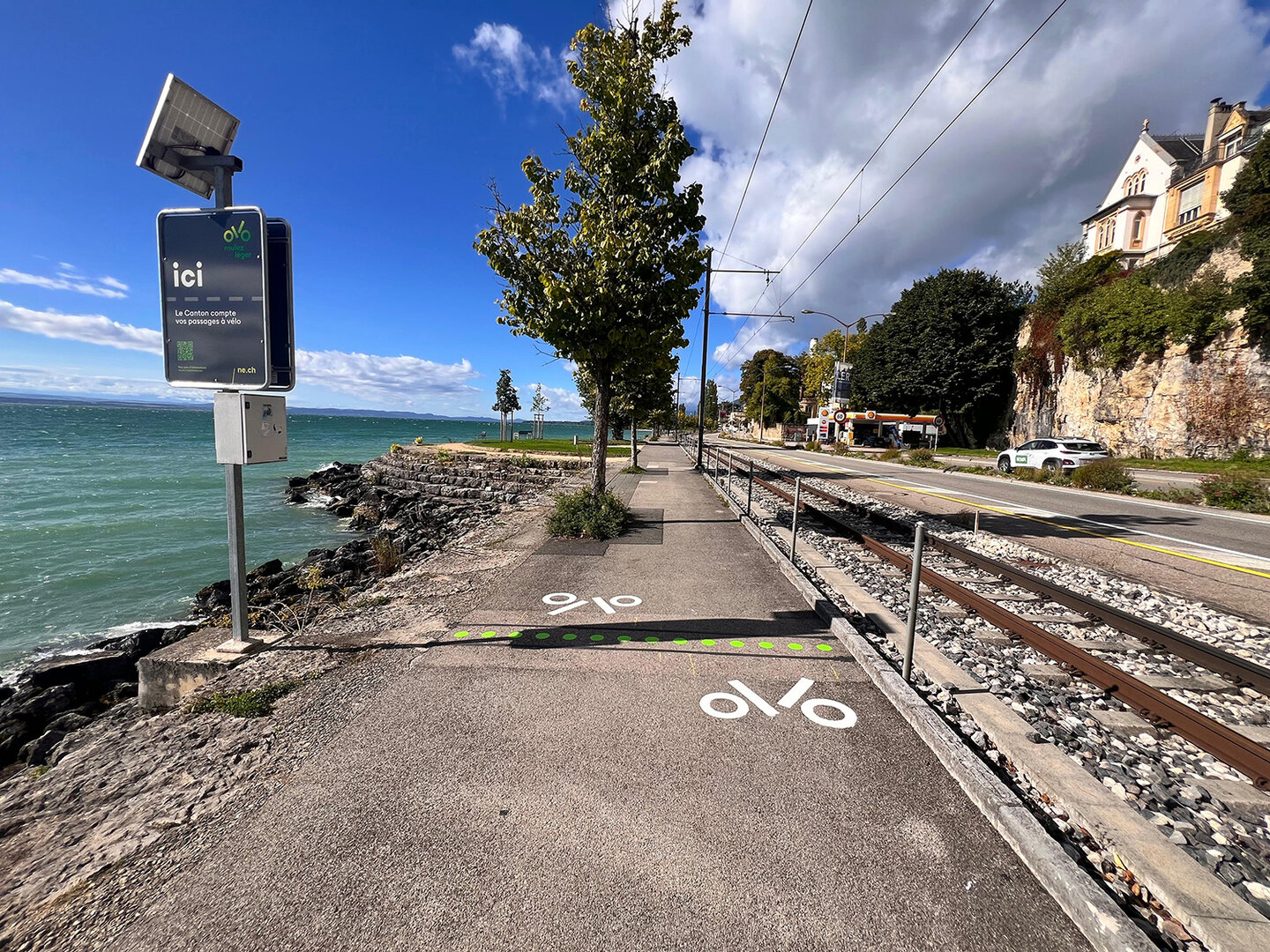 Au début du mois d’octobre 2025, un nouveau poste de comptage promotionnel, d’un modèle déjà présent dans de nombreuses villes en Suisse, va être posé sur le trottoir nord de l’avenue du Premier-Mars, à Neuchâtel, à la hauteur de l’arrivée du Fun’ambule. Il comptera les passages de cyclistes en permanence et alimentera les statistiques cantonales de la mobilité cyclable. Fruit d’une collaboration entre le canton et la Ville de Neuchâtel, ce nouveau compteur vise également à promouvoir le vélo comme moyen de déplacement au quotidien. Un autre a déjà été installé sur le Quai Louis-Perrier.
