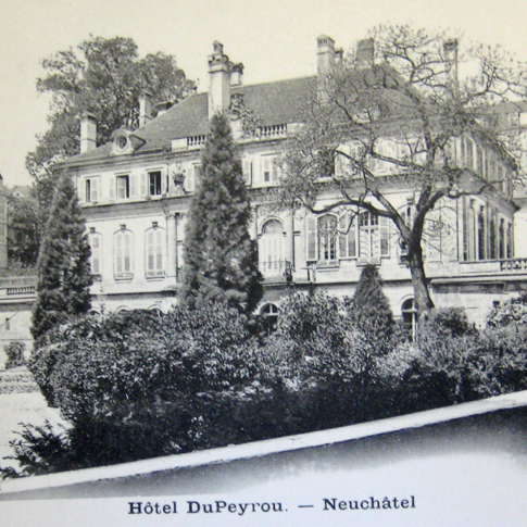 L’ensemble, bâtiment et jardin, a été construit par Pierre Alexandre DuPeyrou, et a été terminé en 1772. En 1806, le bâtiment avec ses jardins sont cédés au Prince de Neuchâtel, le maréchal Alexandre Berthier, qui le vend ensuite au banquier Denis de Rougemont. C'est lui qui donne son nom au palais, longtemps appelé le "Palais Rougemont". Par la suite, la parcelle est cédée à la Commune de Neuchâtel. Le parc, véritable monument de l’art des jardins, a conservé son caractère d’origine « à la française ». Le bâtiment tire un avantage évident de ce cadre magnifique, qui a été conçu comme lieu de détente pour les usagers mais aussi avec l’objectif de mettre en valeur le « palais ».