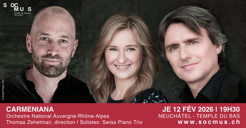 Passionné inconditionnel de l’opéra de Carmen, le compositeur Richard Dubugnon a relevé le défi de composer son nouveau triple concerto Carmeniana en hommage à l’incontournable œuvre de Bizet. Nul doute que la précision et la fougue que le célèbre Swiss Piano Trio sait insuffler à ses interprétations feront merveille dans cette première présentation suisse de ce nouvel opus qui lui est dédié.