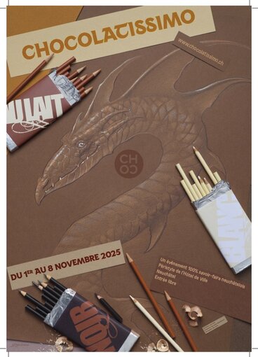 Plongez dans l’univers magique de Chocolatissimo 2025, du 1er au 8 novembre à Neuchâtel ! Pour sa 12e édition, la ville se pare des couleurs du fantastique : dragons ailés, elfes et créatures mystérieuses envahiront le péristyle de l’Hôtel de Ville, où le public pourra voter pour les plus belles pièces montées des apprentis chocolatiers.