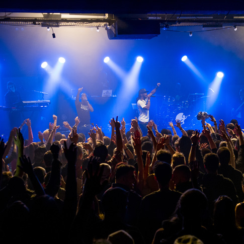 En descendant les marches menant en dessous du Bleu Café, on arrive dans l’ambiance cosy du Salon. Entièrement rénovée, cette ancienne salle de cabaret a changé de visage pour accueillir une programmation culturelle éclectique. Du rock au blues, du jazz au chant lyrique, elle propose aussi du théâtre et diverses expositions. Le Salon peut accueillir quelque 100 personnes par événement.
