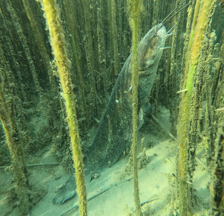 Un silure dans des algues