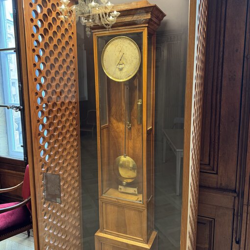 Le comité « Navigation » de l’Agence spatiale européenne (ESA), dont fait partie la Suisse, s’est réuni à Neuchâtel en 2023. Enchanté par sa visite, le comité a souhaité offrir à la ville deux répliques d’horloges atomiques "made in Neuchâtel" pour équiper les satellites Galileo. Le Conseil communal a saisi l’occasion de ce cadeau pour réaménager la Salle des pas perdus de l’Hôtel de Ville, qui abritait déjà l'horloge Hipp du XIXe siècle et l'horloge innovante Isospring de l'EPFL. L'horloge Houriet, qui a plus de 200 ans, a également été déplacée à l'intérieur de l'Hôtel de Ville pour rejoindre cet espace d'exposition ouvert par intermittence au public. Cet espace remodelé témoigne de la tradition d’excellence, de recherche et d’innovation en ville de Neuchâtel. La Salle des pas perdus a donc désormais son petit nom: la Salle des horloges!