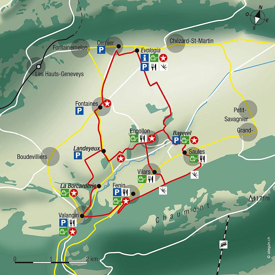 Valangin est le point de départ, d'arrivée ou d'étape de nombreuses balades. Par exemple: