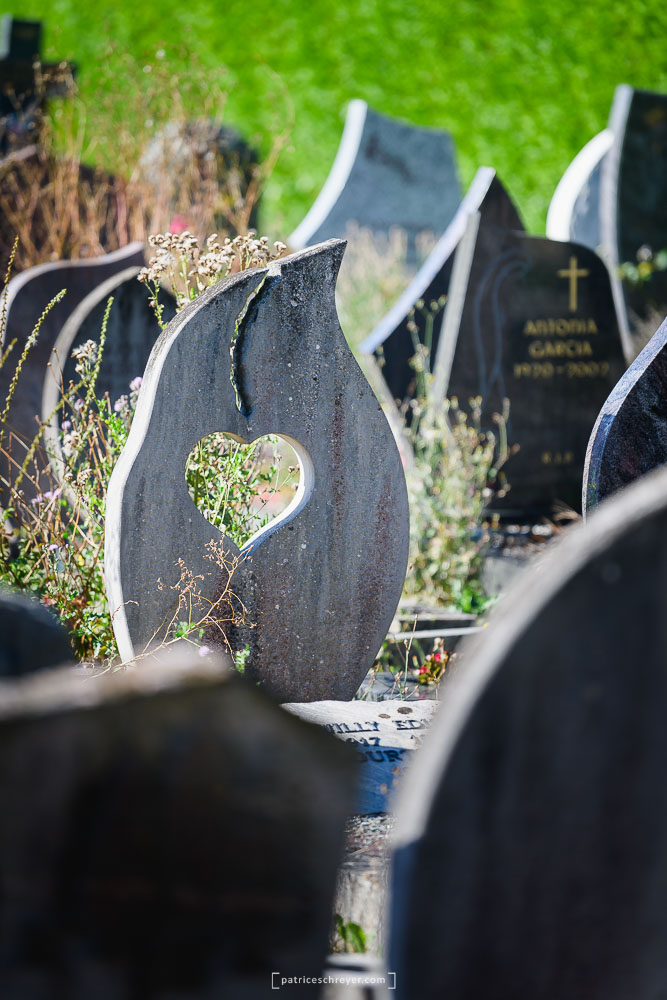 Selon le règlement du cimetière, les inhumations se font à la suite les unes des autres en ligne ininterrompue, sans distinction de culte, de famille, d’âge ou de sexe.