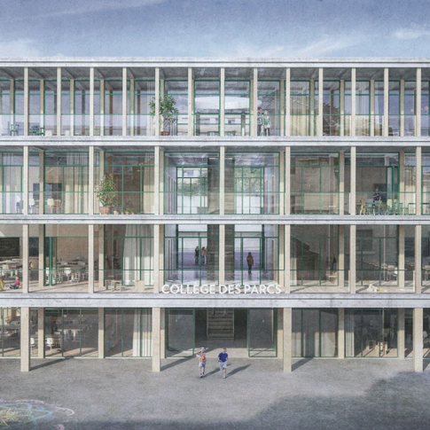 Vénérable établissement scolaire – le premier à avoir été construit en dehors du centre-ville de Neuchâtel – le collège des Parcs a fêté ses cent ans d’existence en 2014, et nécessite aujourd’hui une rénovation de grande envergure. C’est pourquoi les élèves des Parcs ont dû temporairement quitter leur collège à partir de la rentrée d'août 2022 pour rejoindre les collèges des Sablons et de Beauregard. Le grand chantier a débuté et redonnera tout son lustre à ce bâtiment classé. Un autre chantier mené en parallèle permettra la création de deux salles de sports enterrées sous le préau du collège, et la reconstruction du bâtiment annexe pour en faire un jardin d’enfants. Contrairement à la rénovation du collège, ces interventions aux abords du collège ont fait l’objet d’un concours d’architecture ouvert à l’international. C’est le bureau STOA à Neuchâtel qui a décroché le mandat.